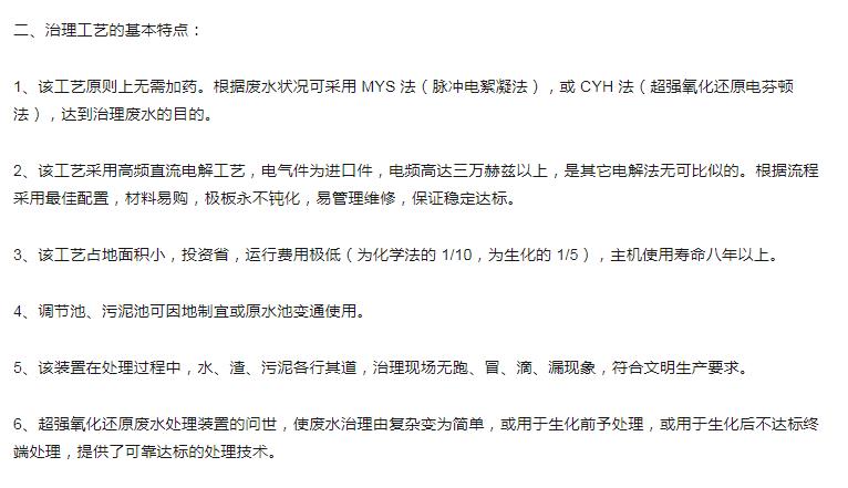 超強(qiáng)氧化還原廢水處理裝置(CYH法)處理各種有機(jī)廢水、各種重金屬?gòu)U水